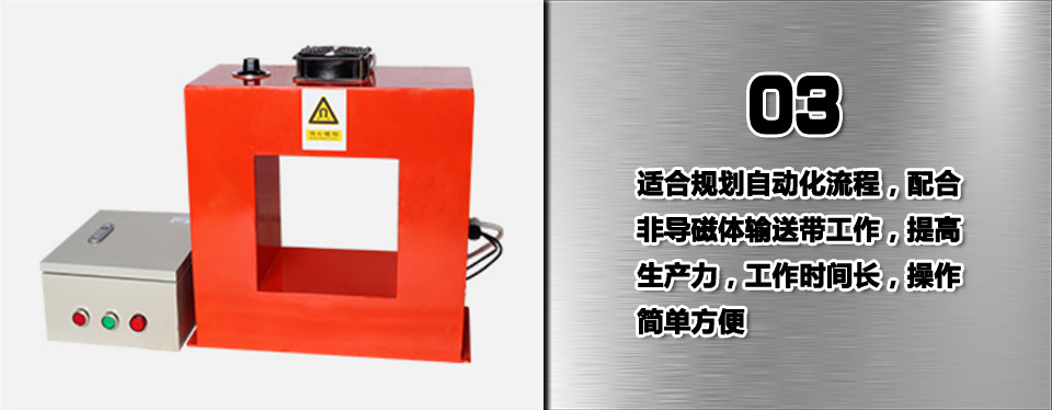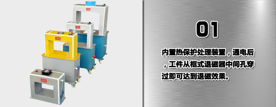 我公司退磁器系列众多,针对性不同,请您参考选型指南对照选型。首先确定使用工件及使用功能,选择不同类别的产品。框式退磁器适合于各种大型零件,大批量工作的精退磁流水线作业。