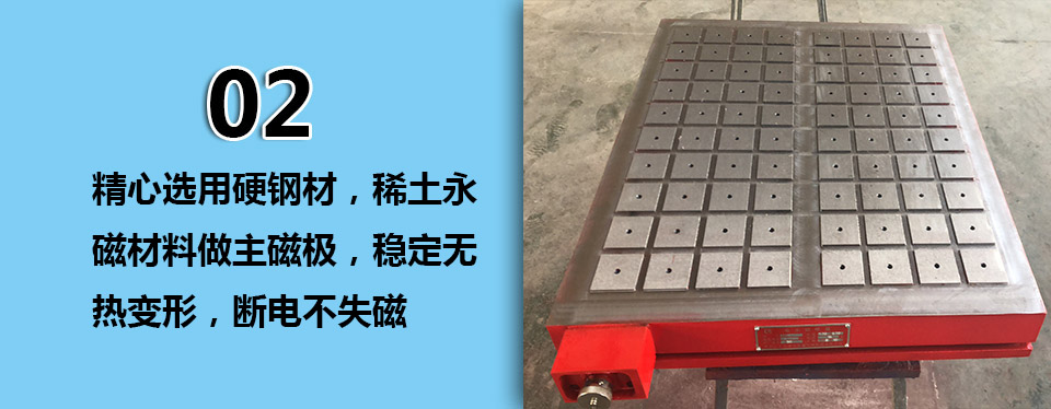 新型电永磁吸盘基于新颖设计理念,颠覆传统电永磁概念,全金属密封,上表面完全是金属,不需要担心防水,整体厚度只有51mm,刚性不减,磁力依然强劲,已经过严格测试,吸力达18kg/c㎡以上。随着现代科技成果在行业中的不断应用,磁性吸盘行业的竞争也越来越激烈。鲁磁科技为了满足市场的需求,特设计出一种全钢性、防水、防锈的电永磁吸盘,全钢性电永磁吸盘,磁极与基板合二为一,整个工作表面全金属,全密封结构,正反两面均无缝连接,无需填充环氧树脂,没有铜嵌条。表面免维护,不变形,无需密封件,无任何渗漏,确保系统内部的电路和永磁体得到保护,大大延长了电永磁吸盘的使用寿命,磁吸力不受影响。此外,该电永磁吸盘表面采用镀硬铬处理,整体防锈,更适合精密的加工。 目前,该电永磁吸盘已大批量投入使用。鲁磁科技将继续努力,研制出更多适合市场需求、让客户放心的电永磁新产品. 典型产品技术数据:型号:DYCX-2516P50-A。